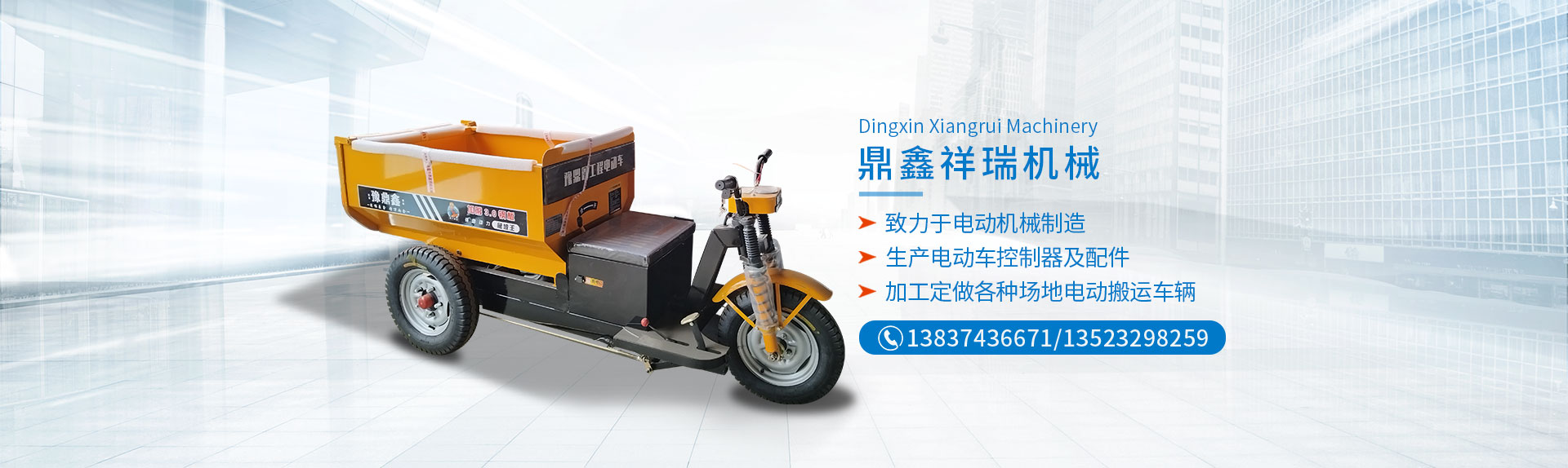 電動工程自卸車長葛市鼎鑫祥瑞機械制造有限公司(原長葛市鑫洋機械配件廠)位于河南省長葛市董村科技工業區,東鄰220省道, 西鄰G4京港澳高速,距新鄭機場35公里,地理位置比較優越,交通便利。 鼎鑫祥瑞機械制造有限公司是一家從事電動機械制造的廠家,現有一支素質很高的技術隊伍,擁有較先進的生產,檢測設備和科學的管理體系,為高質量的產品提供了可靠的保證。 電動工程自卸車主要產品有,1T電動叉車,2T電動叉車,1T,2T,3T,5T,電動礦車,載重王系列貨運電動三輪車,窯場電動專用車,木板廠專用電動車,陶瓷電動搬運車,混凝土電動搬運車,加工定做各種場地電動搬運車輛。本公司生產電動車控制器,電動車配件及電器,各種車輛沖壓件,開發生產研制電動車后橋,各種車輛剎車拉桿,U型螺栓,加工定做異型U型螺栓。產品分別通過行業檢測及配套主機廠認可,深受廣大用戶青睞。 歡迎各界人士前來參觀指導工作,如果您對我們的產品感興趣或者有任何的疑問,您可以直接給我們留言或直接與我們聯絡,并提出寶貴的意見,我們將在收到您的信息后,會及時與您聯絡。 本公司有專業的整機配件供應部,供應部地址:長葛市金橋農機城1區4排5號 電話...